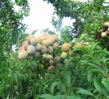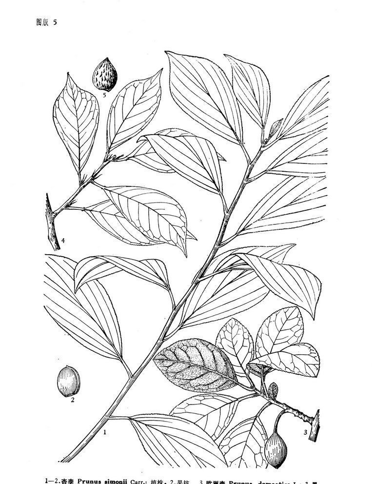 核果球形、卵球形或近圆锥形,直径3.5-5厘米,栽培品种可达7厘米,黄色或红色,有时为绿色或紫色,梗凹陷人,顶端微尖,基部有纵沟,外被蜡粉;核卵圆形或长圆形,有皱纹。花期4月,果期7-8月。