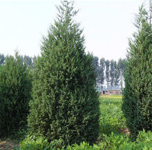 4、龙桧(cv.Kaizuka)树形不规正,枝交错生长,少数大枝斜向扭转,小枝紧密多为鳞叶,仅有时几部萌生糵枝上有钻形叶。树冠圆柱状或柱状塔形;枝条向上直展,常有扭转上升之势,小枝密、在枝端成几相等长之密簇;鳞叶排列紧密,幼嫩时淡黄绿色,后呈翠绿色;球果蓝色,微被白粉。长江流域及华北各大城市庭园有栽培。
